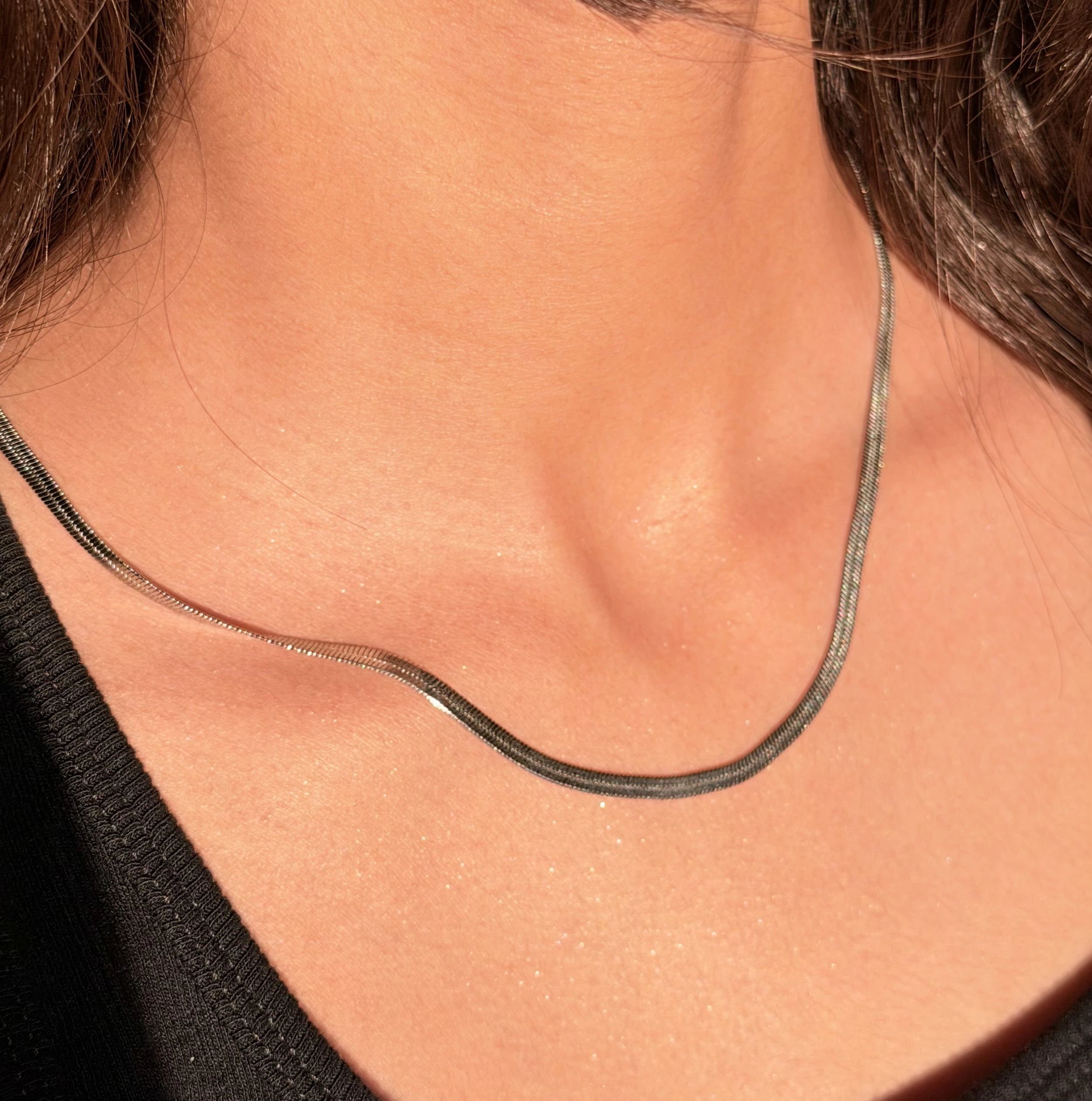 This silver-tone chain is the ultimate “liquid metal” accessory, designed to lay flat against the skin for a smooth, high-shine effect. It is a timeless staple that brings a bold touch to your jewelry collection.