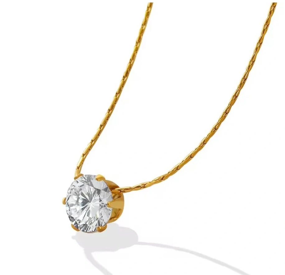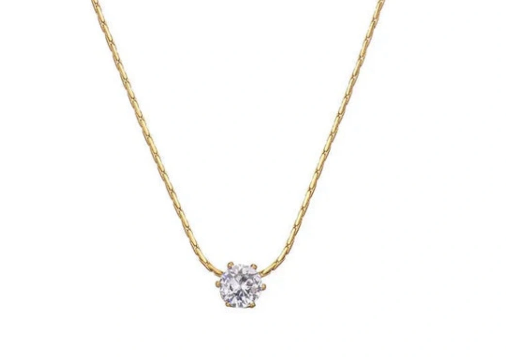 This solitaire crystal pendant offers a masterclass in minimalist luxury, combining a classic gemstone focal point with a contemporary chain texture. It is a refined staple designed for those who appreciate “quiet luxury.”